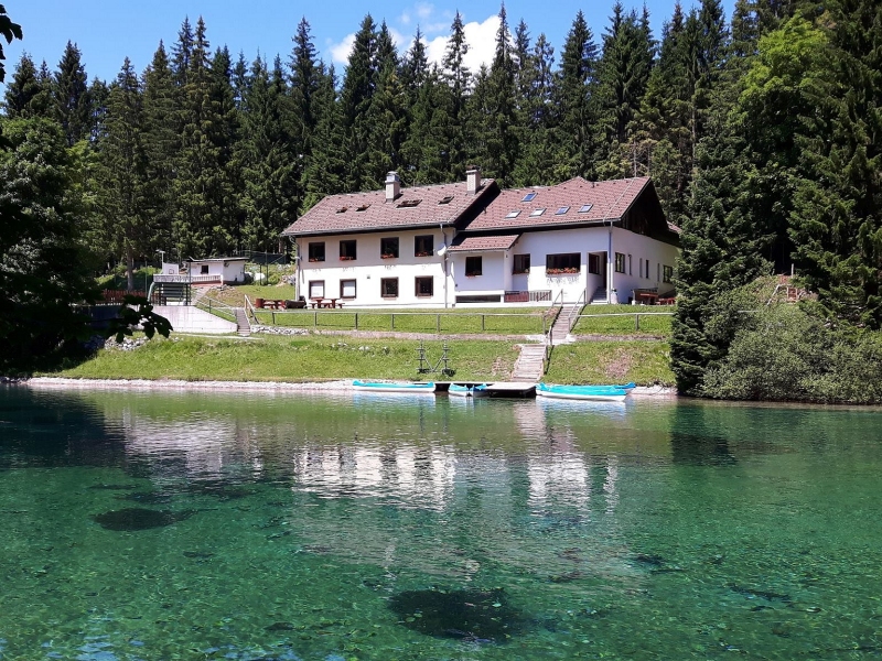 Dom Trilobit leži na pobočju Karavank, na bregu manjšega umetnega jezera smaragdne barve, ob stari hidroelektrarni Javorniški Rovt. S treh strani je obdan z gozdovi in gorskimi pašniki.