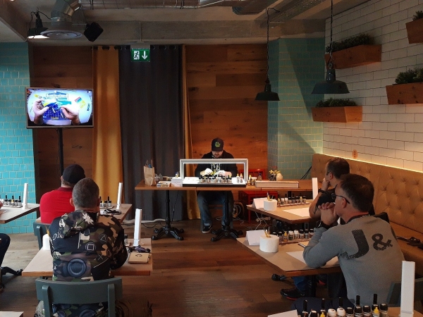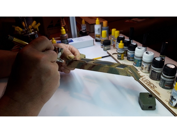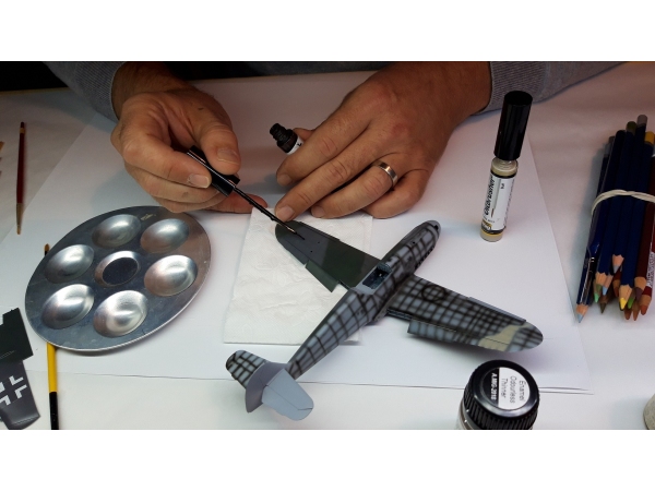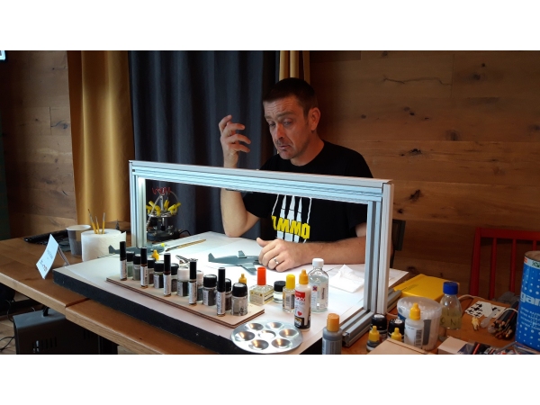 V uvodni delavnici je Uroš Kovač prikazal pripravo maket pred barvanjem, osnove uporabe foto-jedkanih delov in smolnatih dodatkov ter lepljenje, maskiranje in barvanje prozornih delov...