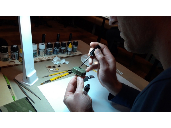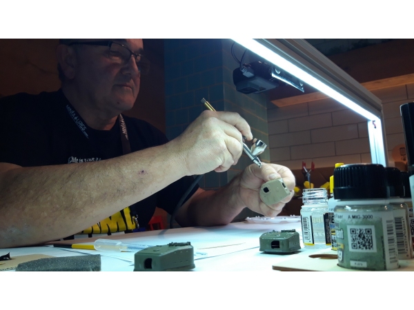 IV. Delavnica pa je bila pod vodstvom Predraga Hluchya. Udeleženci so se preizkusili v staranju kupule oklepnega vozila s pomočjo olj, pigmentov, filtrov in washev.