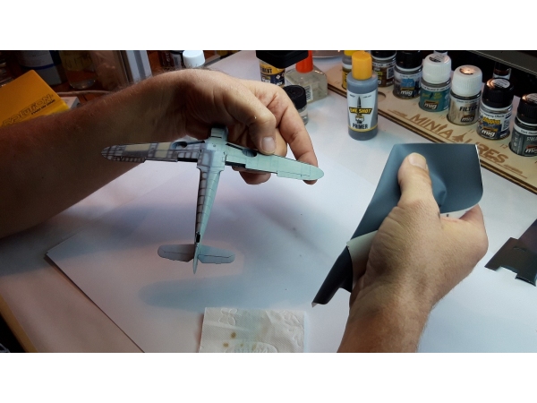 Nadaljeval je mentor Grega Križman, ki je na II. in III. Delavnici prikazal osnove barvanja z zračnim čopičem (air-brushem), nanos temeljne barve ter senčenje maket. Udeleženci so se preizkusili pri nanosu nalepk na maketo ter barvanjem panelov. Slušatelji so bili podučeni o lakiranju maket in s tem povezanimi težavami ter prikazom izdelave okruškov...